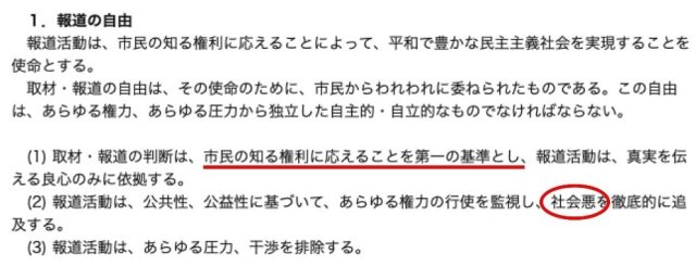 1点だけ挙げると、1条(1)項だけをみても、テレビ局が「第一の基準」にしているのは、「市民の知る権利に応えること」ではなく、誰がどこからどう見てもスポンサー様最優先、視聴率最優先でしょう。