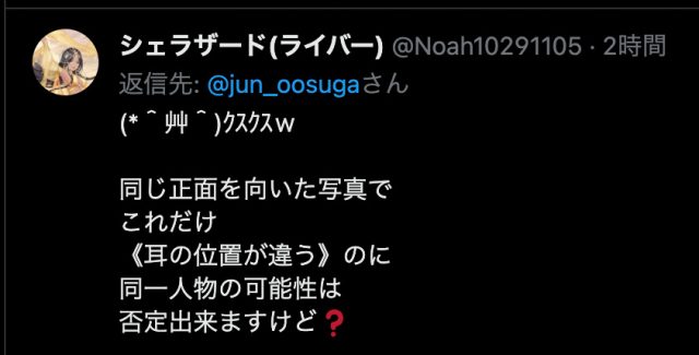 論破祭りなどの周辺にずーっとたかり続ける下記の者も、やはり雑な陰謀論を信じる愚者だったんですね(知ってたけど)。実際はこの下に愛子さまの写真を改竄したひどい画像を載せていますが、見るに耐えないのでカットします(「隠蔽した!って言うんだろうな)