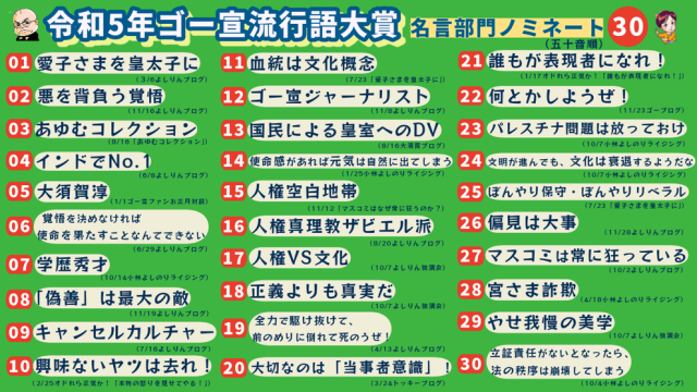 「令和5年度 ゴー宣版流行語大賞&今年の出来事」
