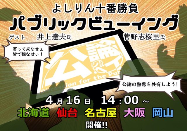 公論サポーターは、このイベントのパブリックビューイングを全国で実施します。
