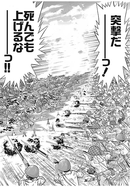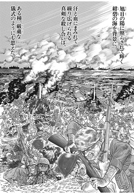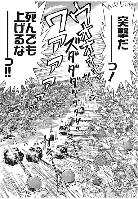 こちらは、よしりん先生の大名作「卑怯者の島」からの1ページ。日米両軍が激突する光景が、凄まじい迫力で描写されています!