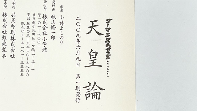 2009年に発行され、23万部のベストセラーとなった最初の「天皇論」。