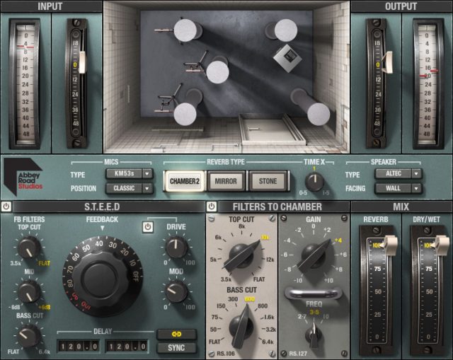 元来、エコーチェンバーと言った場合には、いわゆる「エコールーム」の事を指しました。コンクリートなど硬い素材の壁、床、天井で音が反響しやすいようになっており、ここにマイクとスピーカーを置くことで、他のスタジオで録音する音に残響(リバーブ)を足すという、かなり大掛かりな装置です。