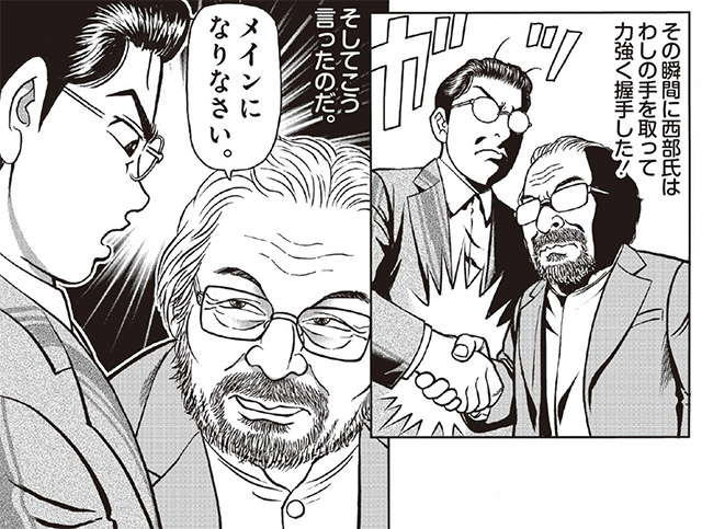「無言の握手」の先にあった「メインになりなさい」の言葉が、ひときわ印象的に描かれています。