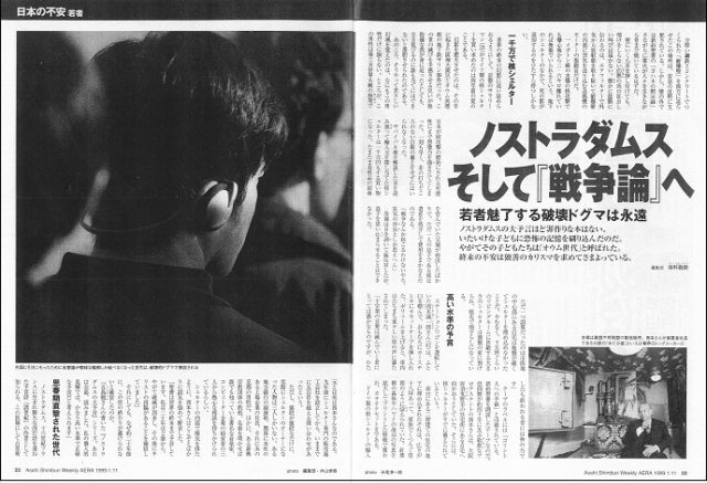 これは、五島勉の『ノストラダムスの大予言』によって、この年の7月に人類が滅亡するということにされていた1999年が明けたところで、「大予言」を信じた人をレポートするという記事で、中には思春期に「終末願望」を植えつけられたために、オウム真理教に入信してしまったという人も登場します。
