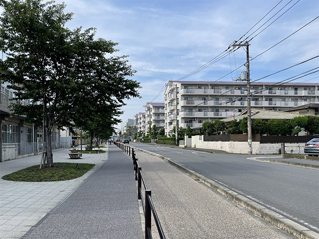 駅を座間市側に出ると、遠近法の解説に使えそうな程にひらすらまっすぐな道路が通っています。実はこの道路、当時は工廠内の滑走路だったそうです。