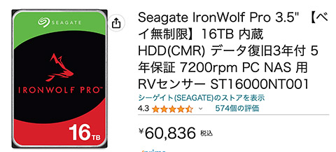 というわけで、撮った動画はどんどんハードディスクに移すことにしましょう。例えばこの「16テラバイト」のハードディスクであれば、