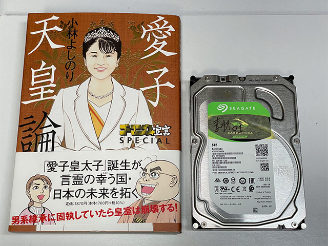 ハードディスクは、愛子天皇論の単行本より小さいので…