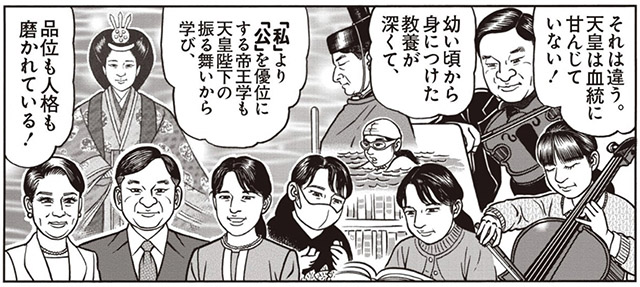 「愛子天皇論」3章でも表現されている、血統に甘んじず教養、品位を磨く陛下や愛子さまのお姿は、まさに「運命的にひきつぐ事になった、日本でもっとも高貴な血統アクセサリー」を汚すことなく、輝かせ、未来へとつなぐべく大きな努力を重ねられている姿に他なりません。