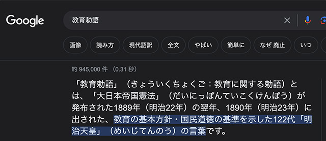 「教育勅語」で比較的トップの方に表示されるものをみると…うーん、なるほど(^^;)