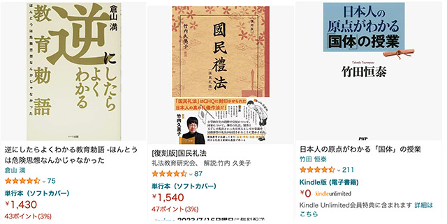 一方、「教育勅語」は、話にならないぐらい多くの書籍がヒットします!