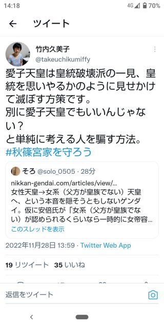 竹内久美子の暴論「愛子天皇とは皇統破壊派が人を騙す方法」