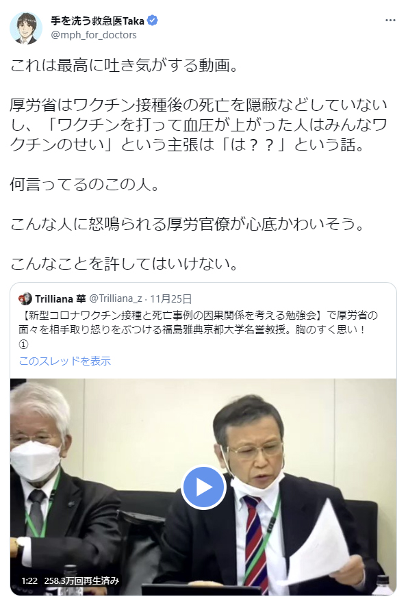 厚労省の官僚に対して怒りを込めて発言する場面にたいして、