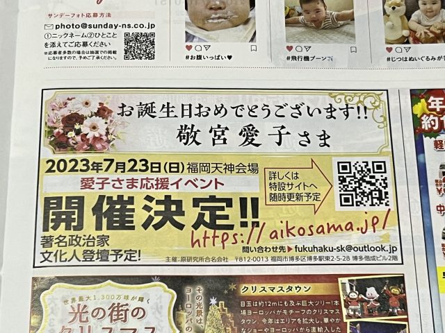 福岡のフリーペーパーに「7/23愛子さま応援祭」が掲載!