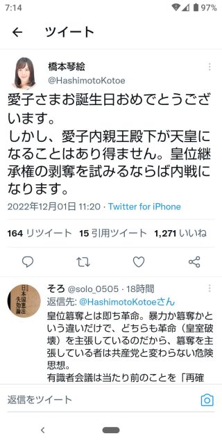 右派の橋本琴絵が昨日の愛子様の誕生日に、