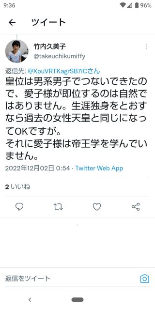 ツイートに「愛子様は帝王学を学んでいません」と書いていますが、根拠はあるのでしょうか。