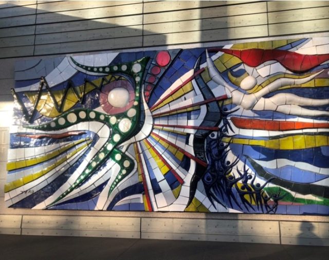 こちらの作品は、岡本太郎氏の陶板レリーフ「躍進」です。