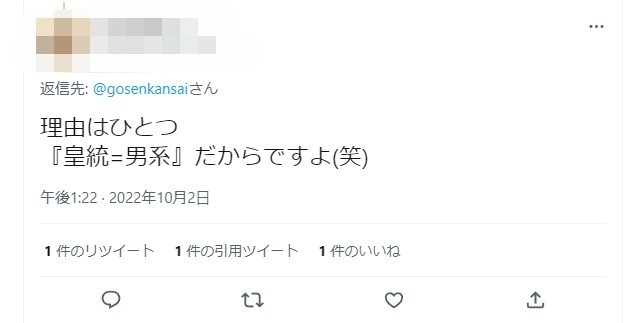 しかしこの人、「皇統=男系だから」としか言わない。