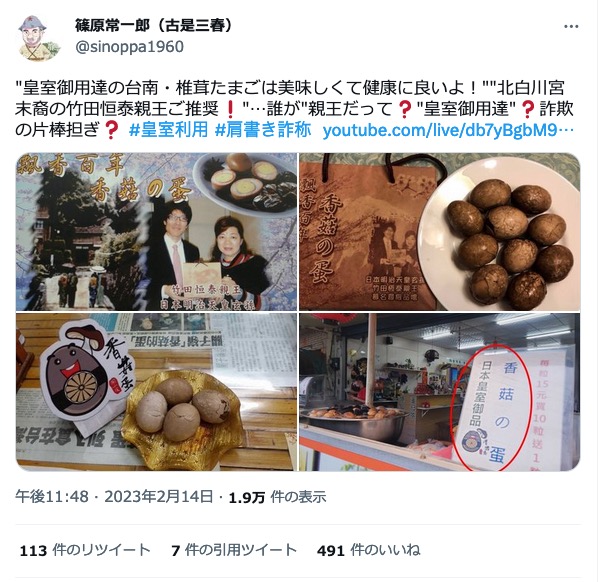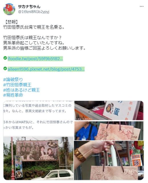 台湾では「竹田恒泰親王」と呼ばれているという、