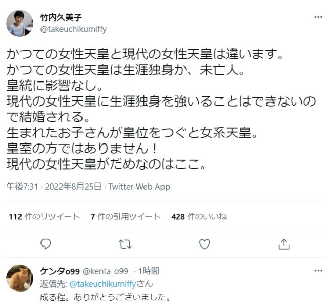 以上から、竹内久美子は皇統や女性蔑視発言に対して、