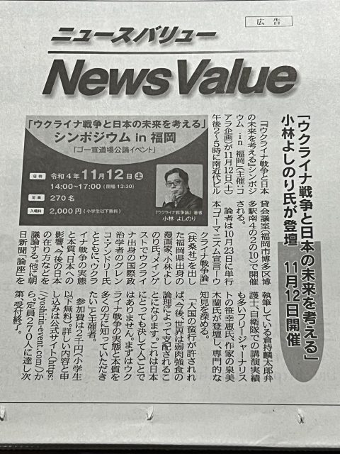 ぜひ、本日の西日本新聞朝刊を読んでください!!