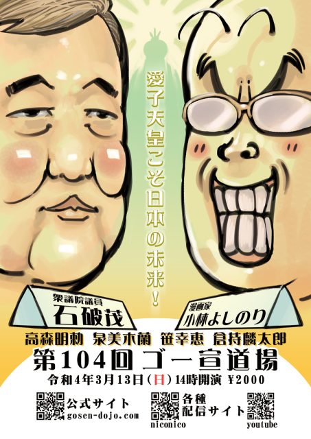 さあ、ゴー宣道場に集い、石破議員の目の前で、安定的な皇位継承とそのための愛子天皇実現を待ち望む熱い気持ちを持った国民がこんなにいるんだ、と見せつけてやりましょう!