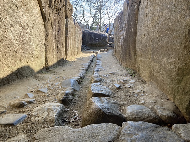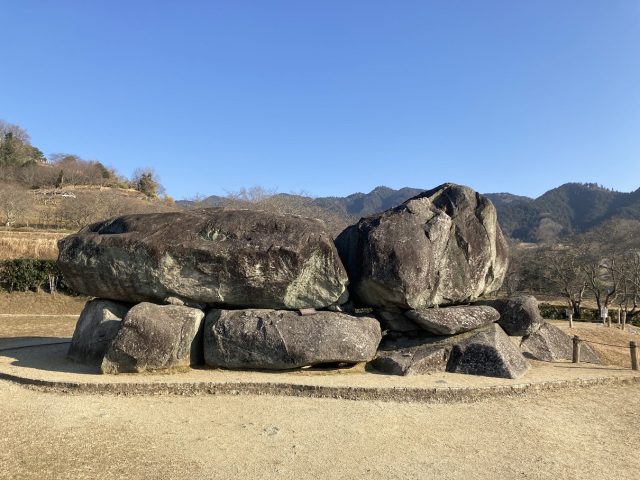 石舞台は日本最大級の古墳で、石室のまわりの土が取り除かれて