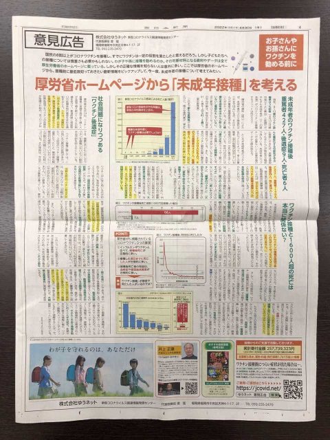 また、この頃私が一つ気になっていたことは地方紙に載せられるお悔やみ欄の死者の数が例年より多いのではないかということでした。多くの方が気付かないうちにワクチンによる犠牲になっているのではないかと危惧しました。