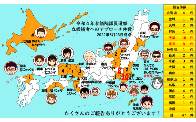 当サイトの参院選特設ページでは、アプローチされた方のご報告を多数掲載しています。