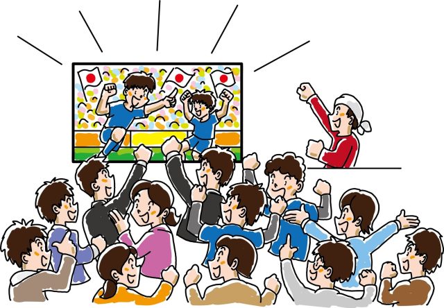 だ 「スポーツバーでサッカー観戦やるのも、パブリック・ビューイングってゆーけど……」