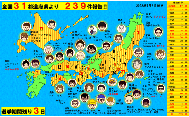 ご報告件数は驚異の239件(7月6日20時半現在)!!