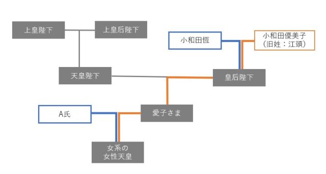 この天皇の男系の祖先はA家、女系の祖先は小和田家