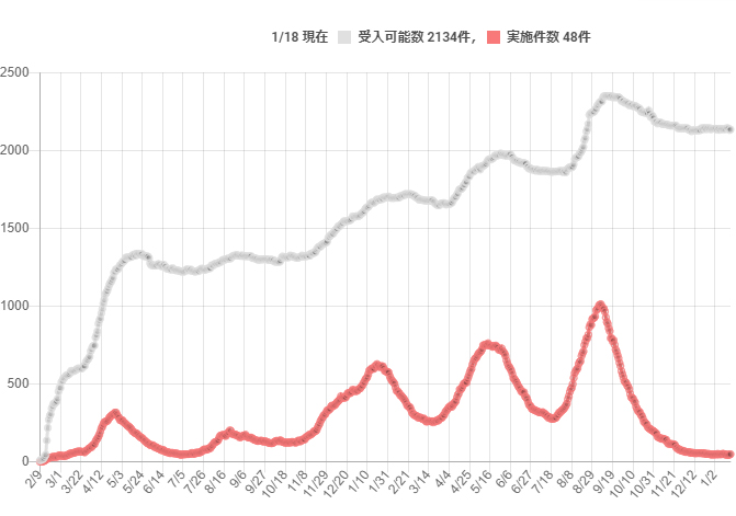 さて、1月18日現在の全国の人工呼吸器装着件数です。