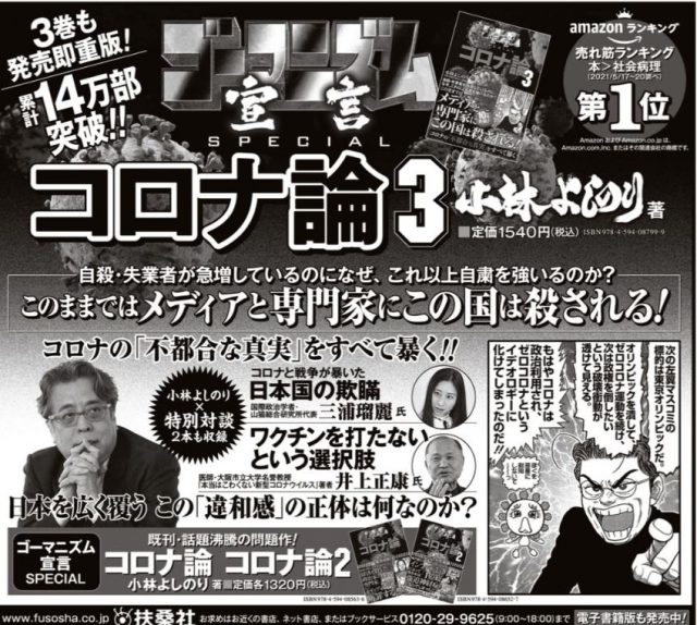 右新聞も左新聞もコロナ脳!朝日・産経に『コロナ論3』広告掲載!