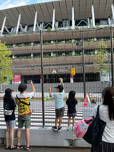 親子連れ、カップルで、スタジアムだけでも見に来たという