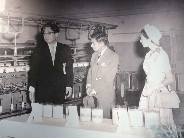 若かりし頃の上皇上皇后両陛下と倉敷紡績の経営者・大原總一郎氏。