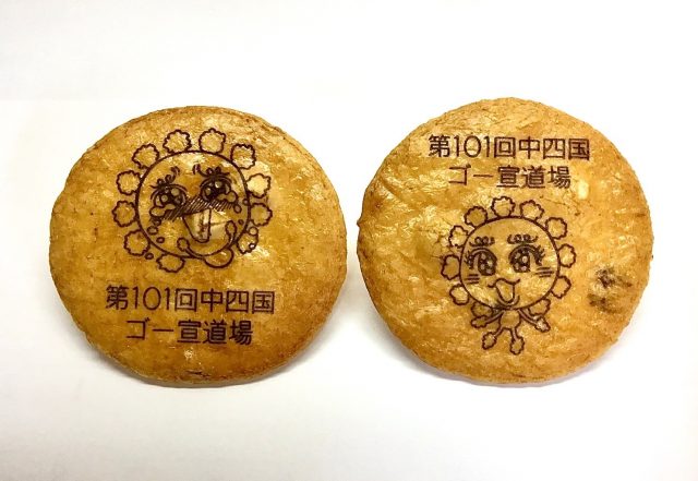 小林先生のキャラクター「コロナ君」がプリントされたおせんべい♪