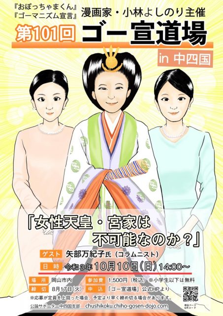女性皇族の人生を通して、皇室、そして日本のあり方を考える「中四国ゴー宣道場」へ!