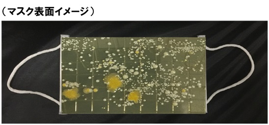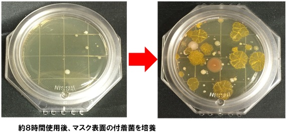 たとえば一日8時間使用したマスクの表面の付着菌を培養