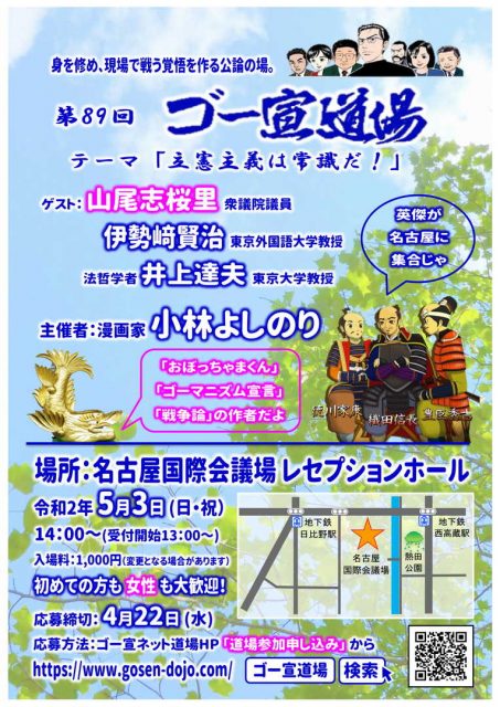 5月3日のゴー宣道場は、「立憲主義は常識だ!」をテーマに開催します。
