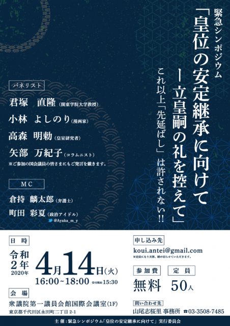 『緊急シンポジウム 「皇位の安定継承に向けてー立皇嗣の礼を控えて」』