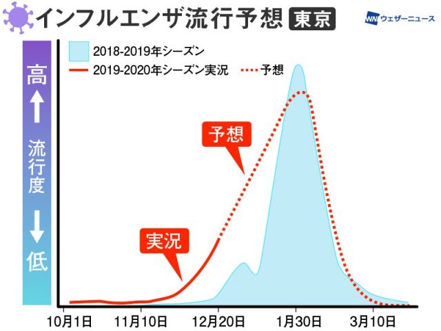 「ウェザーニュース」より東京都のインフルエンザ流行予想