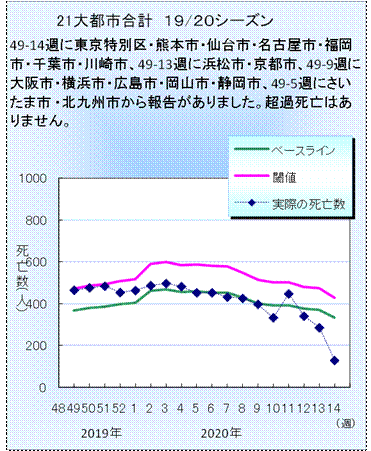 国立感染症研究所のインフルエンザ・肺炎死亡者数を見ると、