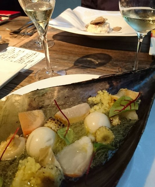 私が選んだのは、貝の燻製マリネと玉ねぎのムース。