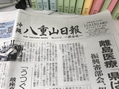 11月13日付の沖縄 八重山日報が載せてくれました!