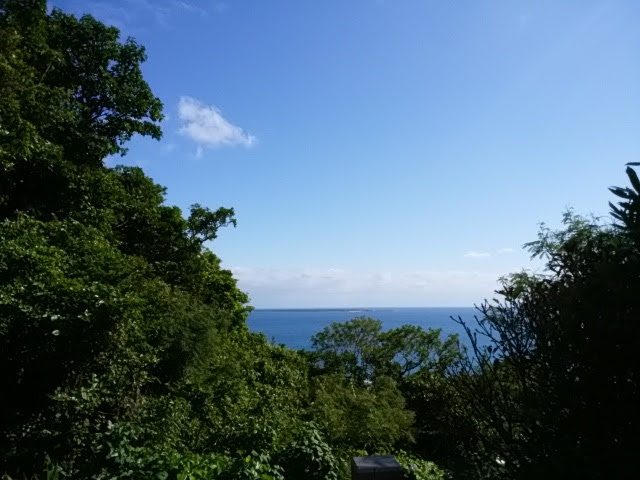 斎場御嶽の遥拝場から久高島を臨んだところ。
