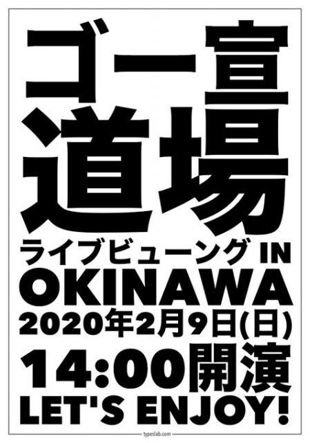 来月2月9日(日)に浦添市内でゴー宣道場ライブビューイングを行います。