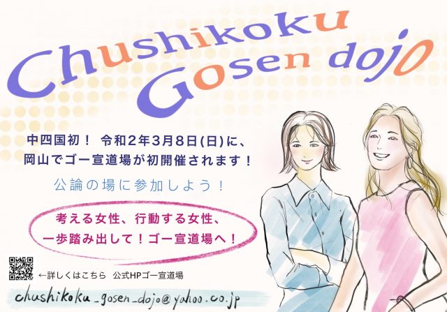 令和2年 3月8日いよいよ岡山の地で初の中四国ゴー宣道場が開催されます。