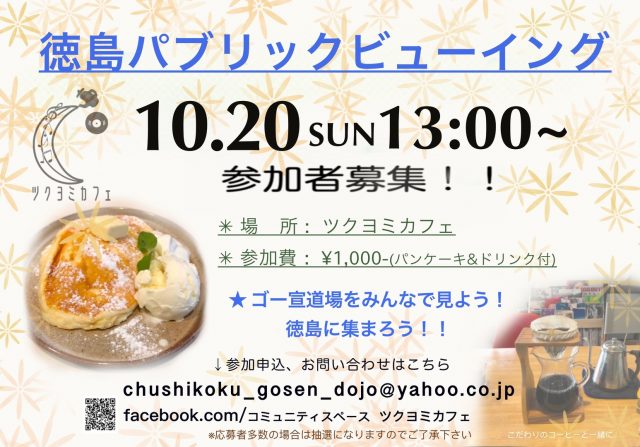 オシャレなカフェで美味しいパンケーキを堪能、ゴー宣道場をみんなで見て語りながら、五感をフルに使って、ゴー宣の秋を贅沢に愉しみましょう!(^o^)