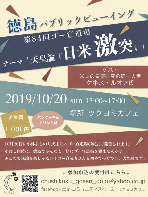 10月20日のゴー宣道場のテーマは「天皇論『日米激突』」